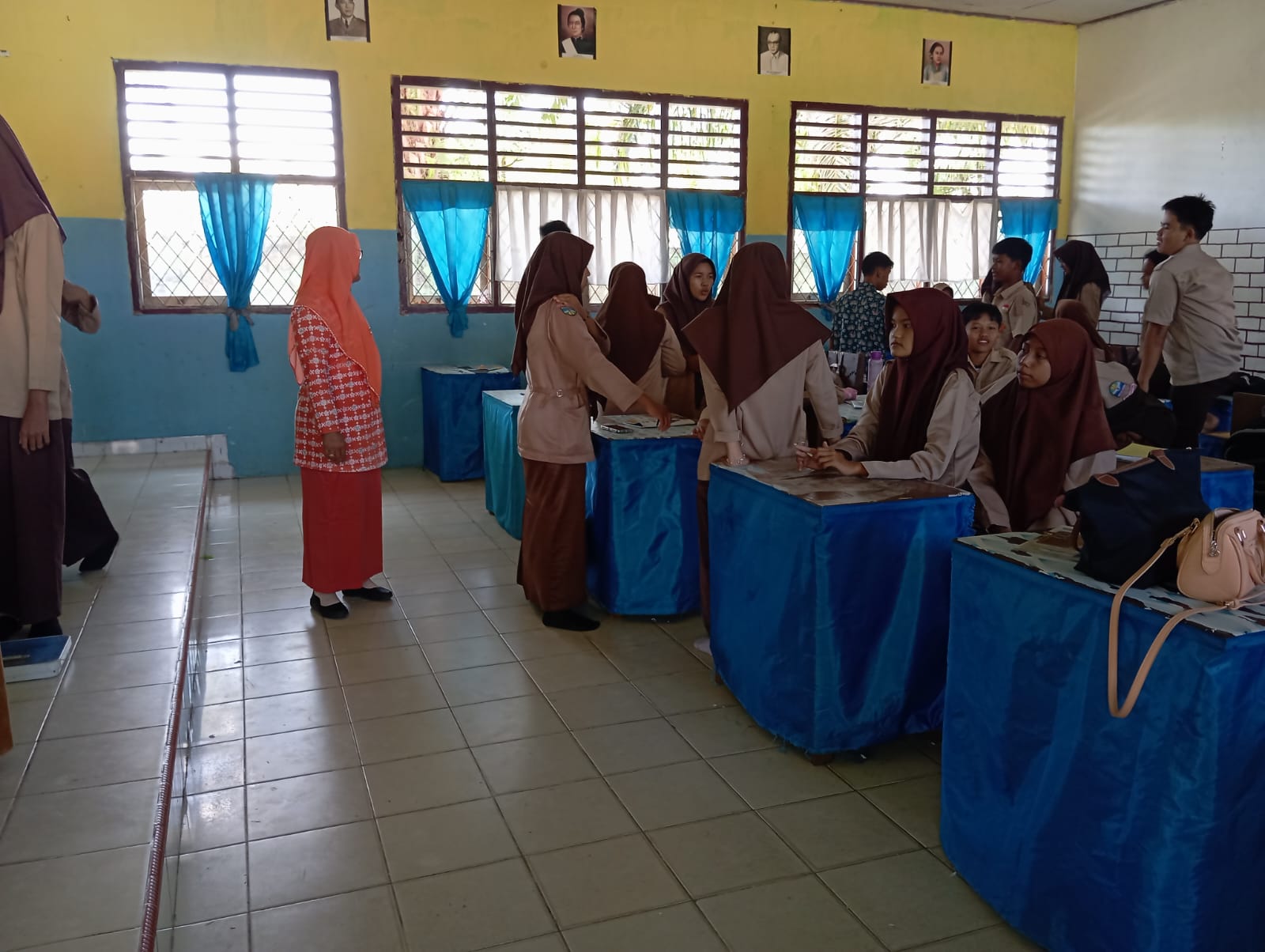 Bungo (MAN 2) – Pusat Kesehatan Masyarakat (Puskesmas) Muara Bungo II menggelar Skrining Kesehatan untuk Siswa Kelas X MAN 2 Bungo, Kamis (19/9/2024). Tujuannya pemeriksaan tersebut sebagai upaya intensif dalam mendeteksi kesehatan sedini mungkin pada beberapa bagian tubuh siswa yang dianggap menjadi pusat tempat terjadinya penyakit. Pemeriksaan awal dimulai dari pengukuran suhu tubuh, tinggi badan, berat badan untuk menentukan status gizi pada anak, lalu dilanjutkan kepada cek mulut. Kemudian ada pemeriksaaan buta warna, cek mata, telinga, golongan darah lalu pengisian kuisioner kebiasaan merokok pada laki laki dan skrining anemia pada perempuan.