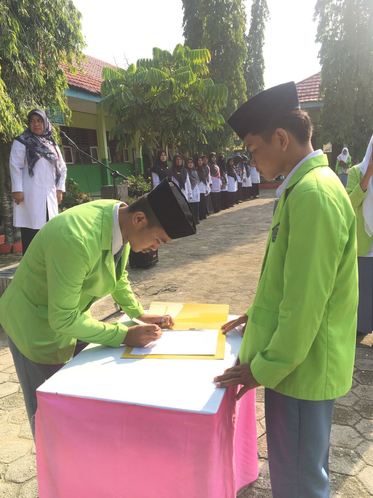 Setelah dilaksanakan pembacaan sumpah janji pengurus OSIM dilanjutkan dengan penandatanganan berita acara serah terima dari pengurus lama kepada kepengurusan yang baru dengan disaksikan oleh seluruh warga MAN 2 Bungo.