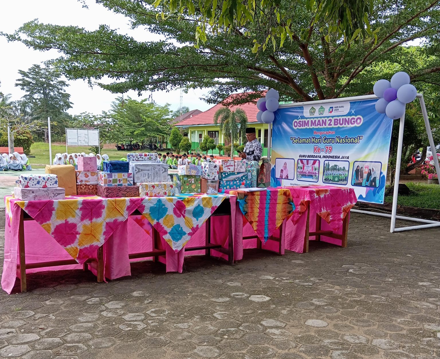 Bungo _(MAN 2) Pagi ini Senin (25/11/2024) MAN 2 melaksanakan Upacara Gabungan Dalam Rangka Hari Guru Nasional Tahun 2024 upacara dilaksanakan di Lapangan MAN 2, kali ini MAN 2 memperingatinya dengan berbagai kegiatan sederhana tetapi cukup meriah.