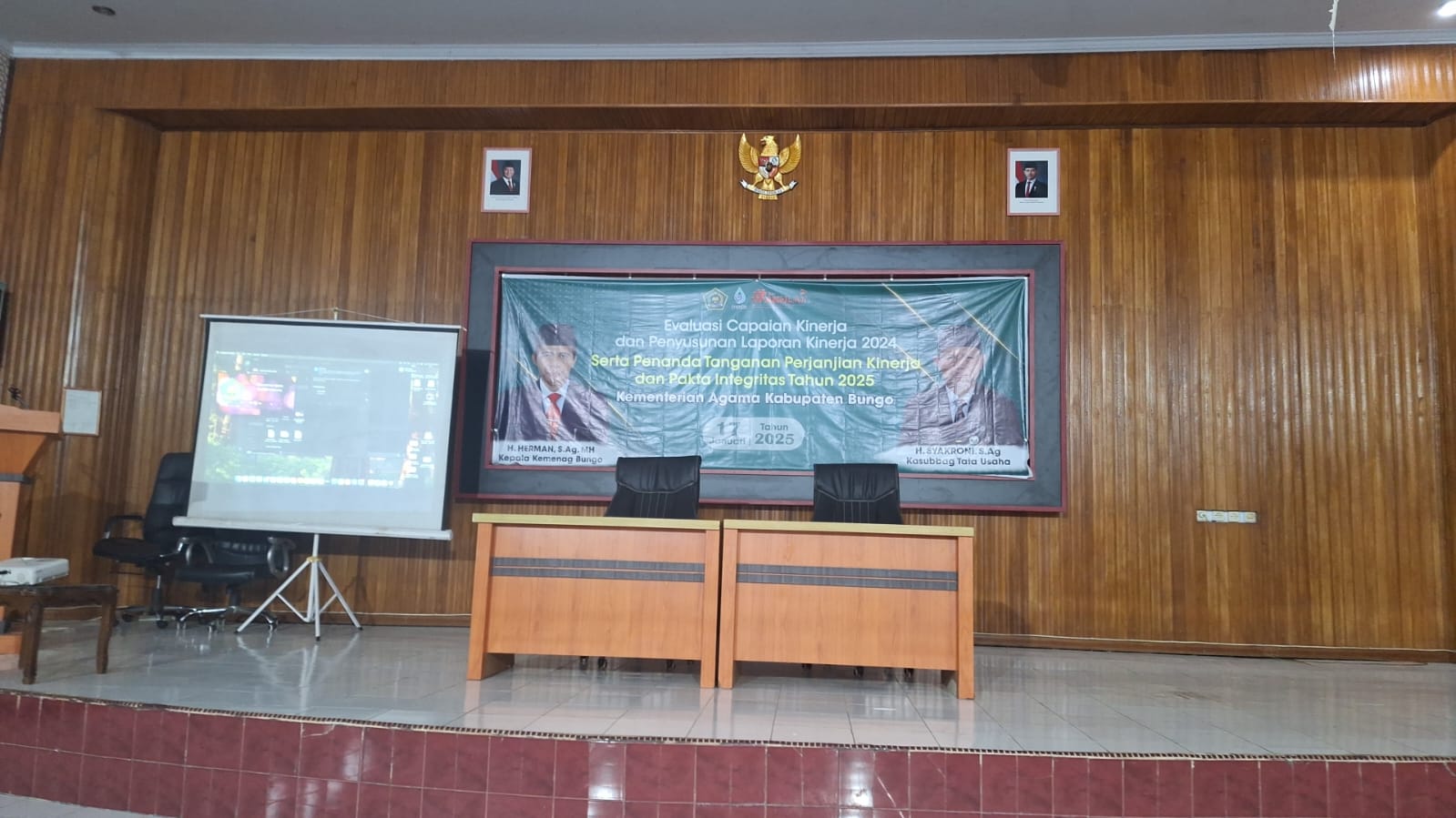 Bungo (MAN 2 ) -- Kepala Madrasah Aliyah Negeri (MAN) 2 Bungo, Ibu Dra. Hj. Masniah, S.Pd turut serta dalam acara penting yang diselenggarakan oleh Kantor Kementerian Agama (Kemenag) Kabupaten Bungo pada Jum'at pagi (17/1/2025). Acara tersebut merupakan Penandatanganan Perjanjian Kinerja (Perkin) dan Fakta Integritas Tahun 2025, yang dihadiri oleh seluruh kepala madrasah dan pejabat di lingkungan Kemenag Kabupaten Bungo.