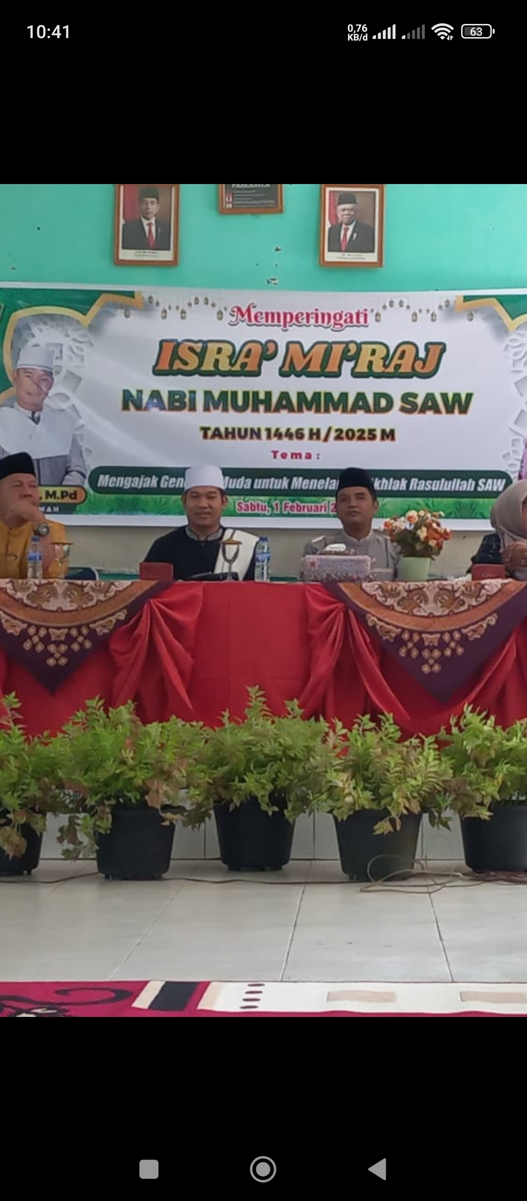 Peringatan Isra’ Mi’raj ini diisi dengan tausiyah dari Ustadz Mu'alimin, M.Pd, dengan tema " Mengajak Generasi Muda Untuk Menelaah Akhlak Rasulallah SAW" Beliau menjelaskan bahwa inti dari peristiwa ini adalah perintah sholat lima waktu, yang merupakan ibadah utama dalam kehidupan seorang muslim. Ustadz Mu'alimin juga menegaskan bahwa seseorang yang istiqomah dalam melaksanakan sholat tidak akan mudah terpengaruh oleh dampak negatif teknologi modern, yang kerap membuat manusia berpikir secara materialistis dan atheis. Sholat membentuk pribadi yang unggul, disiplin, dan sabar, yang sangat diperlukan dalam menghadapi tantangan masa depan serta meraih cita-cita.