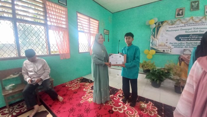 Bungo_ MAN 2 Bungo menggelar peringatan maulid Nabi Muhammad SAW 1447 H membangun semangat kebersamaan melalui cinta Rasulullah SAW, "mari kita jadikan Maulid Nabi sebagai momentum menumbuhkan cinta Rasulullah, meneladani, Akhlaknya dan memperkuat Ukhuwah", hari ini Sabtu (20/09/2025).