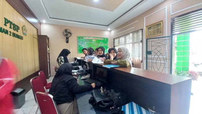 Bungo — Mahasiswa Program Pengalaman Lapangan Kependidikan (PPLK) dari Institut Agama Islam (IAI) Yasni Muara Bungo melakukan kunjungan resmi ke MAN 2 Bungo untuk meminta tanda tangan Kepala Madrasah sebagai bagian dari kelengkapan laporan kegiatan PPLK.