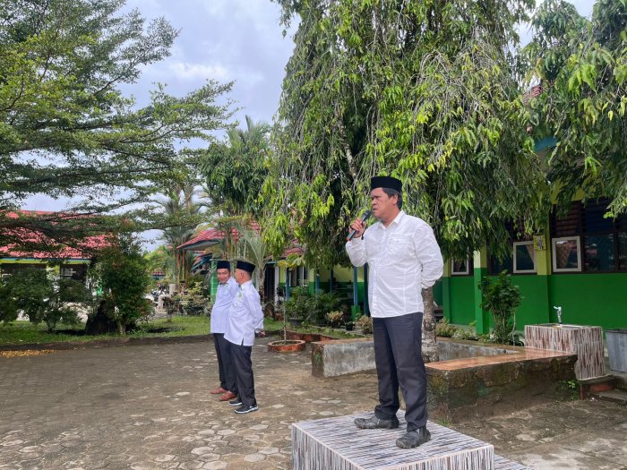 Bertindak sebagai pembina upacara, Bapak Mardiansyah, S.Pd.I, dalam amanatnya menekankan pentingnya disiplin dan rasa tanggung jawab bagi seluruh warga madrasah. Beliau menyampaikan bahwa disiplin bukan hanya soal datang tepat waktu, tetapi juga menyangkut sikap, etika, dan komitmen dalam menjalankan tugas sebagai pelajar maupun pendidik.