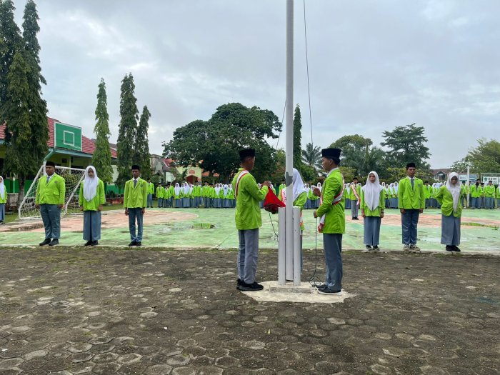 Bungo – Pelaksanaan upacara bendera hari Senin di MAN 2 Bungo berjalan dengan khidmat dan penuh disiplin. Pada upacara kali ini, siswa kelas XII A mendapat kepercayaan untuk menjadi petugas upacara. Dengan persiapan yang matang, mereka mampu melaksanakan tugas dengan baik, Mulai dari komandan upacara, pembaca teks UUD 1945, pengibar bendera, hingga pembaca doa, seluruh rangkaian tugas dijalankan secara maksimal.