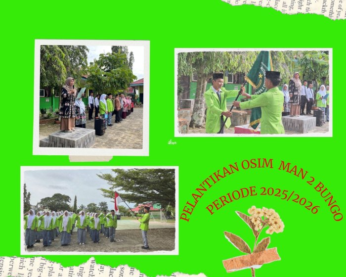 Bungo_ Organisasi Siswa Intra Madrasah (OSIM) MAN 2 Bungo resmi dilantik untuk masa bakti 2025/2026 dalam sebuah upacara khidmat yang digelar di Lapangan MAN 2 Bungo, Rabu pagi (22/10/2025). Prosesi pelantikan ini menjadi momen bersejarah sekaligus titik awal bagi kepengurusan baru untuk membawa semangat perubahan dan inovasi di lingkungan madrasah.