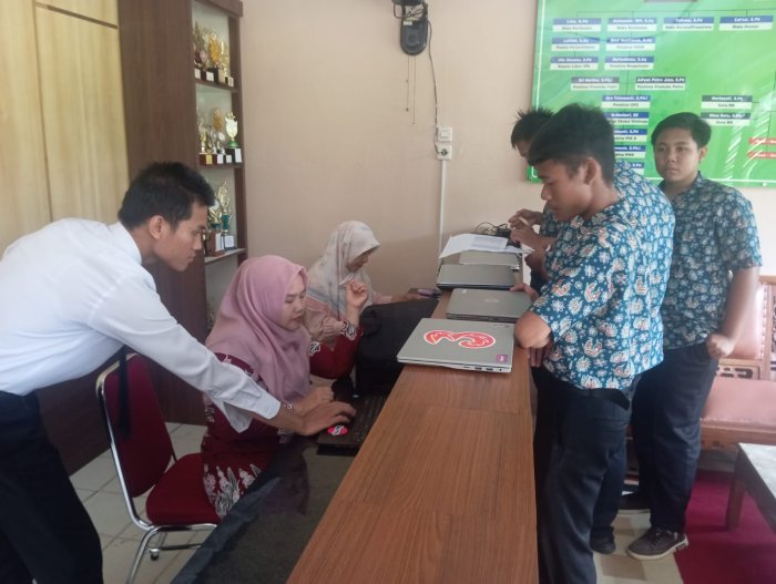 Proktor dan teknisi bekerja sama melakukan pemasangan, pengecekan, serta uji coba sistem aplikasi TKA agar dapat berjalan dengan lancar saat digunakan oleh siswa nantinya. Selain itu, mereka juga memastikan koneksi jaringan internet, server, dan akun peserta ujian telah berfungsi dengan baik.