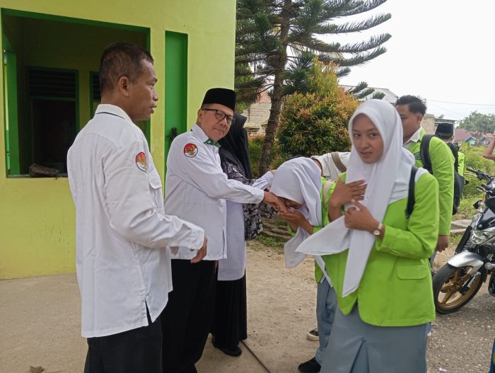 Bungo_ Udara pagi di halaman MAN 2 Bungo terasa begitu sejuk dan penuh kehangatan. Sejak pukul 06.40 WIB, para guru telah berdiri di depan gerbang madrasah dengan senyum tulus dan sapaan hangat, menyambut para siswa yang datang memulai aktivitas belajar di awal pekan.