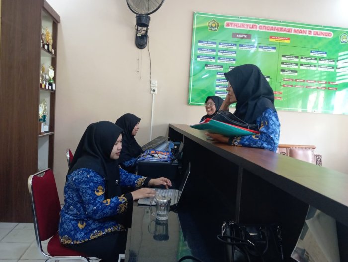 Kedua guru tersebut disambut langsung oleh petugas PTSP MAN 2 Bungo dengan pelayanan ramah dan profesional. Dalam kesempatan tersebut, para guru menyampaikan beberapa pertanyaan dan kebutuhan administrative.