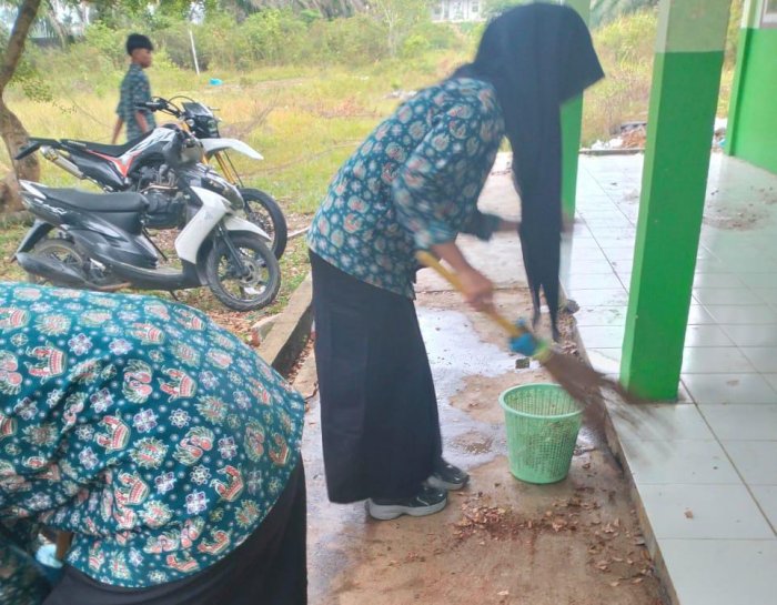 Kegiatan bersih-bersih ini bukan hanya sekadar menjaga kebersihan, tetapi juga menanamkan nilai disiplin, tanggung jawab, dan kepedulian terhadap lingkungan. Para siswa terlihat antusias, mulai dari menyapu lantai, membersihkan meja dan kursi, hingga merapikan halaman madrasah.