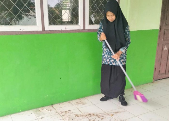 Para guru piket juga memberikan arahan dan tips sederhana agar kegiatan bersih-bersih berjalan efektif. Tidak hanya itu, mereka juga memberi motivasi agar siswa terus menjaga kebersihan setiap hari, bukan hanya saat ada kegiatan resmi.