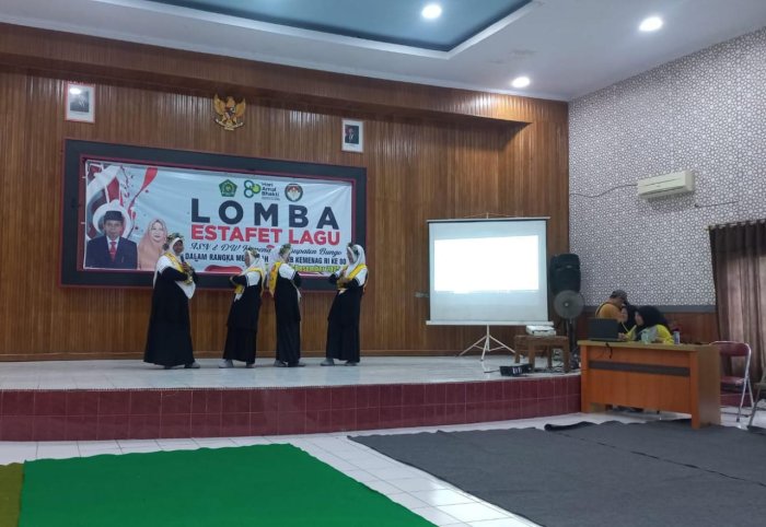 Semarak HAB ke-80 Kemenag, Tim Guru MAN 2 Bungo Tampil di Lomba Estafet Lagu di Kantor Kementerian Agama Kabupaten Bungo pada Kamis (18/12/2025).