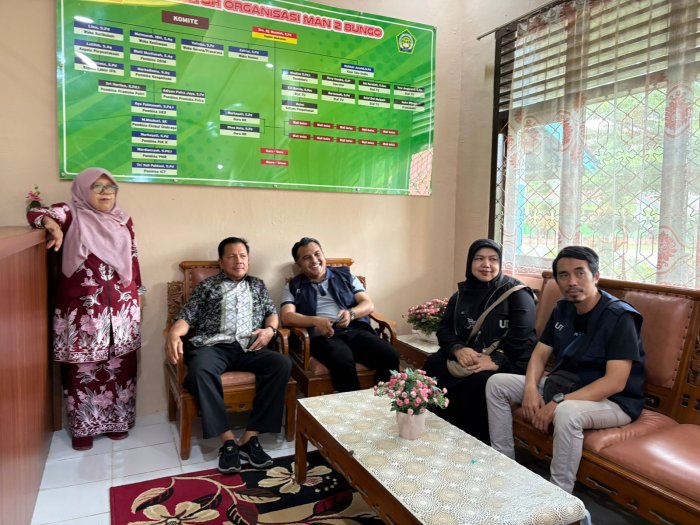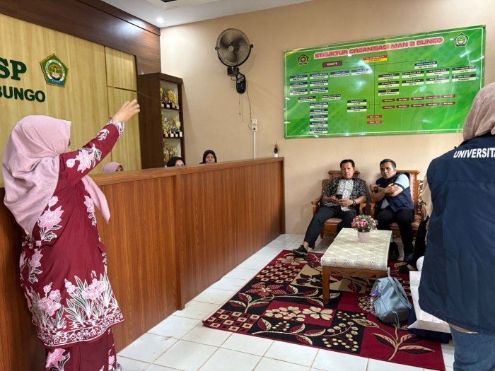 Tim Sosialisasi Universitas Terbuka (UT) melakukan kunjungan ke Madrasah Aliyah Negeri (MAN) 2 Bungo dalam rangka memberikan sosialisasi mengenai sistem pendidikan tinggi terbuka dan jarak jauh kepada para siswa kelas akhir, baru-baru ini.
