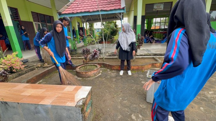 Para siswa tampak antusias mengikuti kegiatan tersebut. Mereka bekerja sama tanpa memandang perbedaan kelas maupun tingkatan. Canda dan tawa menghiasi kegiatan gotong royong, mencerminkan kekompakan antara guru dan siswa. Dalam waktu beberapa jam, ruang kelas dan lingkungan sekolah tampak lebih bersih, asri, dan nyaman.
