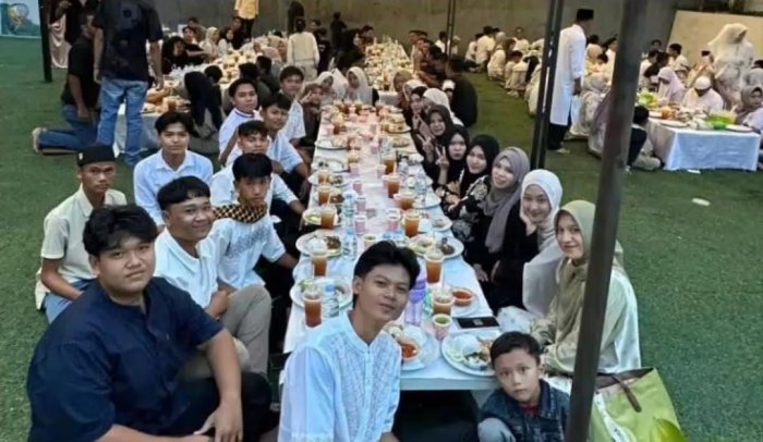Saat adzan Maghrib berkumandang, seluruh peserta berbuka puasa bersama dengan penuh rasa syukur. Suasana hangat dan penuh kebahagiaan tampak jelas dari kebersamaan yang terjalin di antara mereka.