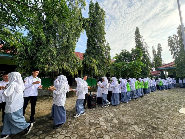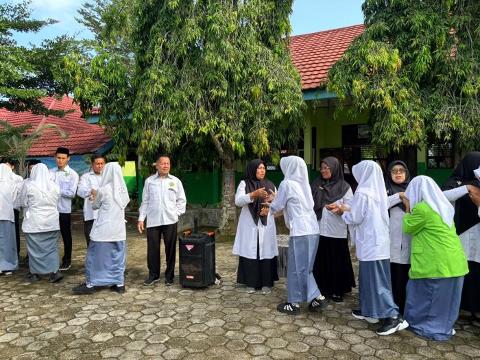Kegiatan berlangsung dengan tertib, lancar, dan penuh kehangatan. Para siswa tampak antusias mengikuti rangkaian kegiatan, sementara para guru menyambut dengan ramah setiap jabat tangan yang diberikan.